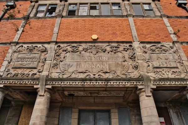 Everton Library is a disused library building in Everton Brow, Liverpool. Designed by architect and Liverpool City Surveyor Thomas Shelmerdine and constructed in 1896, it remained in use as a library until 1999. It was used by various community groups up until 2006, and has been derelict since. There are plans in progress to convert the building for use as an arts, culture, heritage and enterprise centre. In September 2019, it was named on the Victorian Society’s list of the top ten most endangered buildings in England and Wales. Plans for redeveloping the building as a cultural hub were proposed in 2014 but were put on hold due to finances. Plans were restarted in 2016 with a proposal to turn the building into an arts, culture, heritage and enterprise centre but nothing came to fruition. In November 2018 it was announced that a local property and hotel group were interested in restoring the building for use as a youth centre and community hub, but the plans came to nothing. The council signed off £920,000 worth of essential repairs in December 2021, but local campaigners claim that the building is still suffering from problems with the roof and windows and with water ingress. Preserving the building is still a commitment of the council but they claimed that funding was an issue, with a bid for ‘Levelling Up’ funding to be used towards the project being rejected by the government.