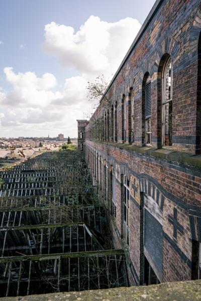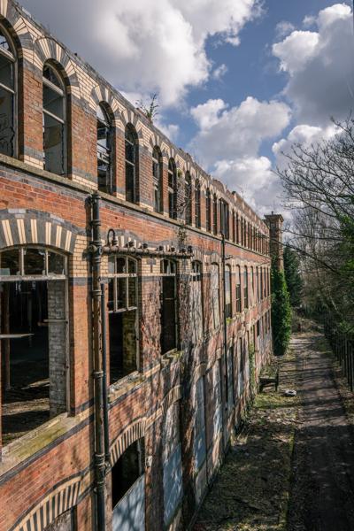 Although the textile machinery has long since disappeared and cotton production in the region declined during the twentieth century, the building itself remained in use for several decades after its industrial life ended. In the later twentieth century the complex was adapted for educational use by Wigan and Leigh College, where it became widely known locally as the Pagefield building. Following the college’s relocation in the early twenty-first century the site was vacated and has since entered a prolonged period of dereliction. Today the structure survives as a prominent industrial landmark overlooking Mesnes Park, its deteriorating fabric reflecting both the immense scale of Victorian textile manufacturing and the broader decline of Lancashire’s mill industry.